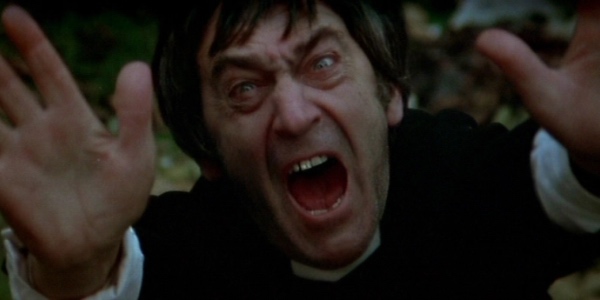 The Omen is film filled with deeply constructed representational shots. There impact is undeniable and the the beauty of their craft breathtaking. Here, as Robert is shown the child, the moment takes on a sense of double exposure – a double truth. Robert is shown the child through the nursery window, the innocence and need of the child radiating and solidifying Robert’s decision to call him his own. In the background however, Father Spiletto moves in the distance, settling in the corner and looking back on the scene. If you know the story of The Omen, the shot speaks even louder, the puppeteer looking back at his construction, the final strings of his involvement being pulled. It is a powerful image, one that finds its match as Father Brennan is introduced later on.