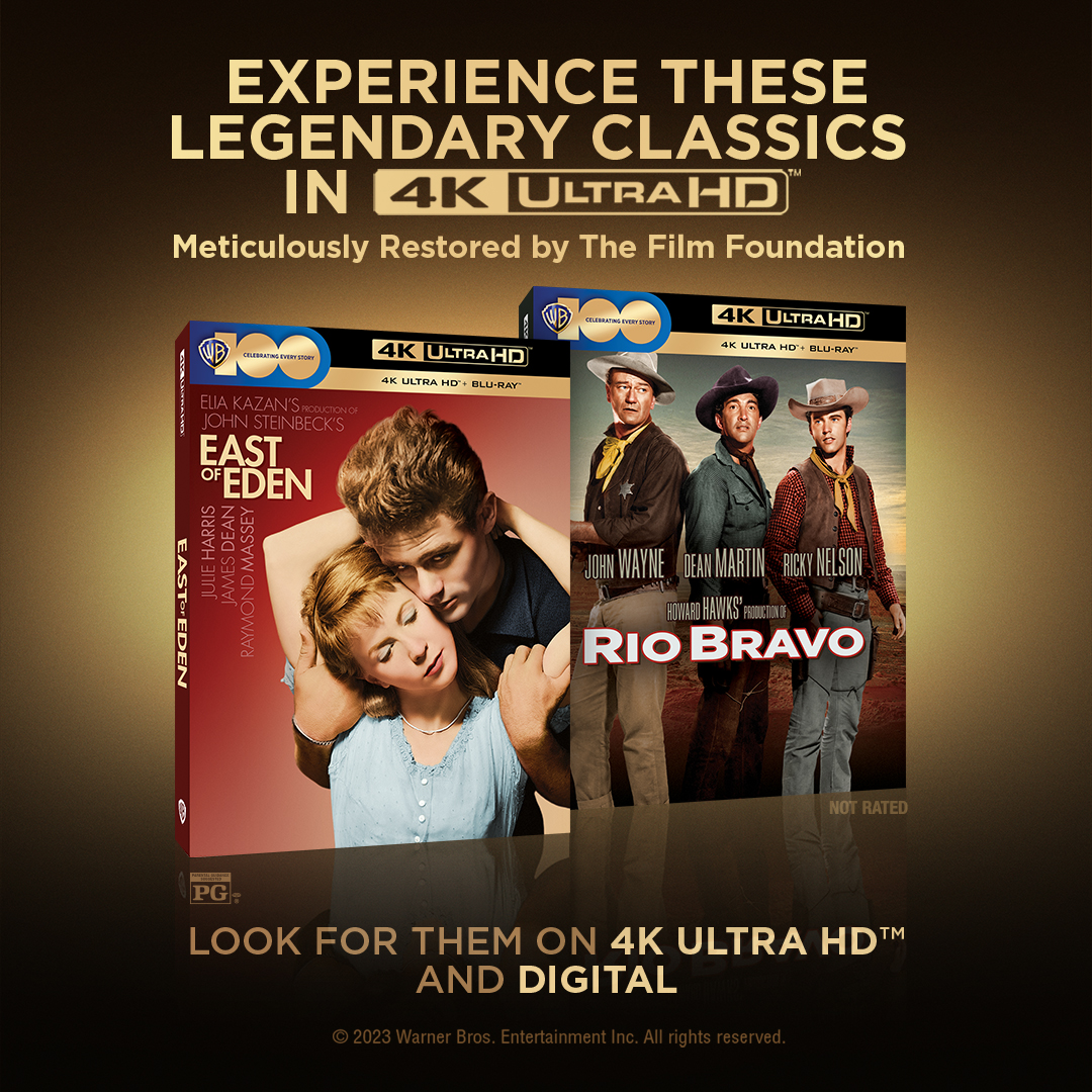 Build your collection of cinematic classics. Now available for the first time in stunning 4K Ultra HD™ — See James Dean in Elia Kazan’s award-winning adaptation of John Steinbeck’s East of Eden, and watch Howard Hawks’ timeless western, Rio Bravo, starring film legend John Wayne.
